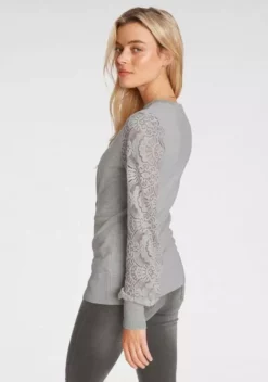 Melrose Strickjacke mit Ärmeln aus Spitze Schwarz, Hellgrau