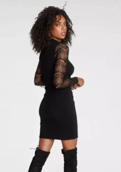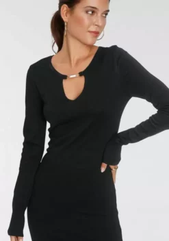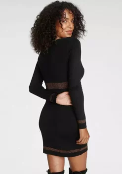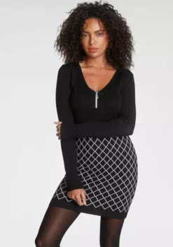 Melrose Strickkleid mit Norweger-Muster Dunkelgrau-schwarz, Schwarz-grau, Camelfarben-braun