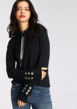Melrose Strickkleid mit Ziergürtel Grau-schwarz, Schwarz-bordeaux, Schwarz-weiß, Braun-gestreift
