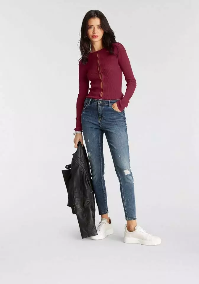 Mit der Strickjacke von Melrose bestellst du dein zukünftiges Lieblingsteil. Die Strickjacke ist hüftlang und sehr figurbetont geschnitten, wodurch du deinen Körper schön betonst. .