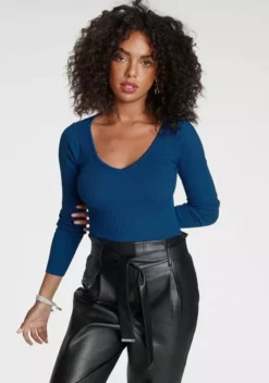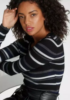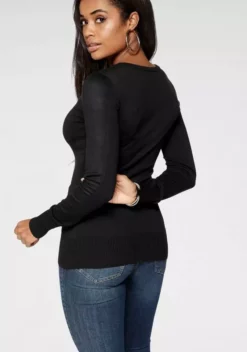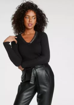 Melrose V-Ausschnitt-Pullover mit transparenten Chiffon-Ärmeln Rot, Dunkellila, Schwarz, Rosa