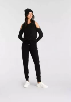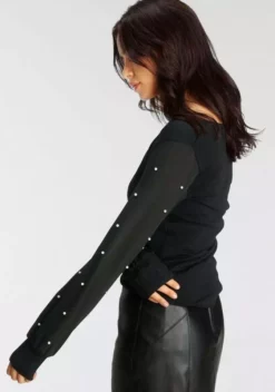 Melrose Freizeitanzug, aus Strick mit Perlen-Details – NEUE KOLLEKTION Schwarz, Beige-meliert